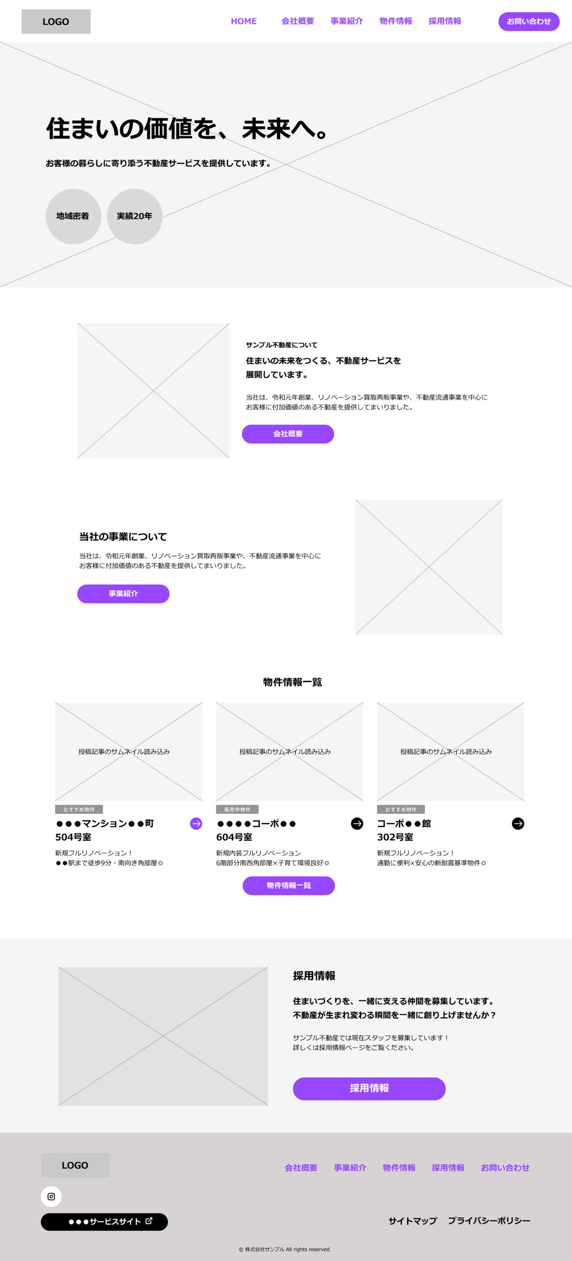 それでは、今回は不動産事業のワイヤーフレームを例として解説していきます。