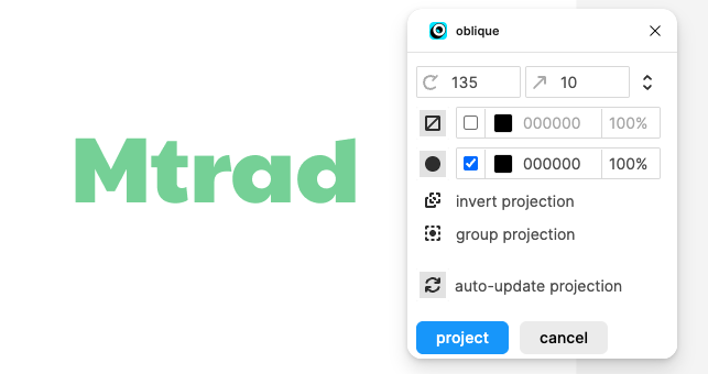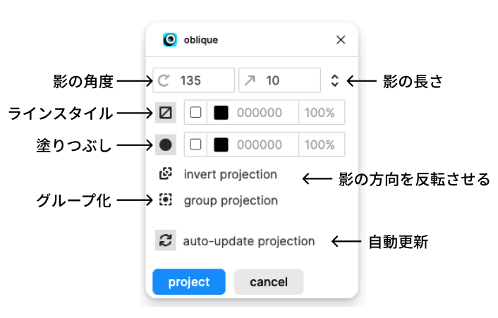 03. obliqueを立ち上げて、角度や影の長さを調整します。