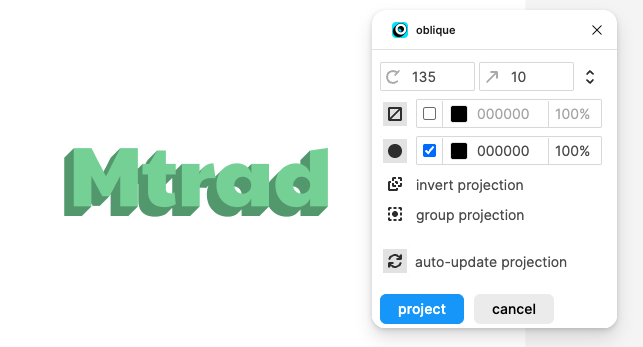 obliqueというプラグインで、図形や文字に影をつけたり簡単に遠近感をつけることができます。